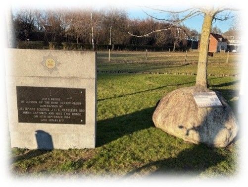 De brug die u ziet speelde een heel belangrijke rol tijdens de Tweede Wereldoorlog. Op 10 september 1944 veroverden het Britse XXXe legerkorps deze brug en bevrijdden vanaf 17 september Nederland met de operatie Market Garden, nadat de brug bijna weer in Duitse handen kwam. Dat zit zo. De Irish Guards hadden hem bij een verrassingsaanval op de Duitsers veroverd. Maar met tegenaanvallen proberen ze de brug te heroveren. Daarbij vallen ook meerdere burgerslachtoffers. De Guards houden stand en de brug wordt genoemd naar hun commandant J.O.E. Vandeleur. In het Barrierspark aan de voet van de brug is een gedenksteen geplaatst die herinnert aan de strijd om de brug. Deze herdenkingsplaats wordt jaarlijks bezocht door veteranen, familieleden en historici die de gebeurtenissen van 1944 blijven onderzoeken en herinneren.