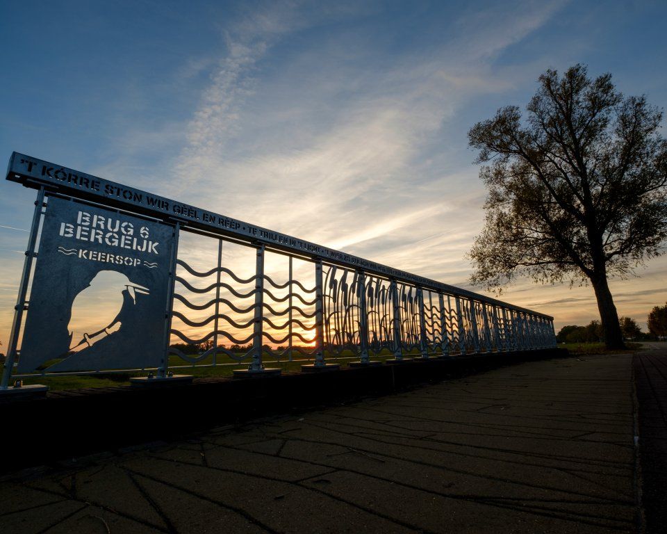 Door de groene gemeente Bergeijk lopen diverse beken: de Keersop, de Beekloop, de Keunensloop, de Dommel en de Run. Overal waar wegen die beken kruisen, ligt een brug. Omdat een aantal brugleuningen in Bergeijk vervangen moest worden, greep de gemeente Bergeijk de kans om hier een bijzonder ontwerp voor te maken. Deze fietsroute voert je langs 10 unieke bruggen die een fraai voorbeeld zijn van de kennis en kunde van de metaal-industrie in Bergeijk. Elke brug heeft een eigen thema met beelden en teksten die verwijzen naar natuur en lokale verhalen. De teksten zijn deels geschreven door lokale basisschoolleerlingen en dichters. Veel fietsplezier in Bergeijk!