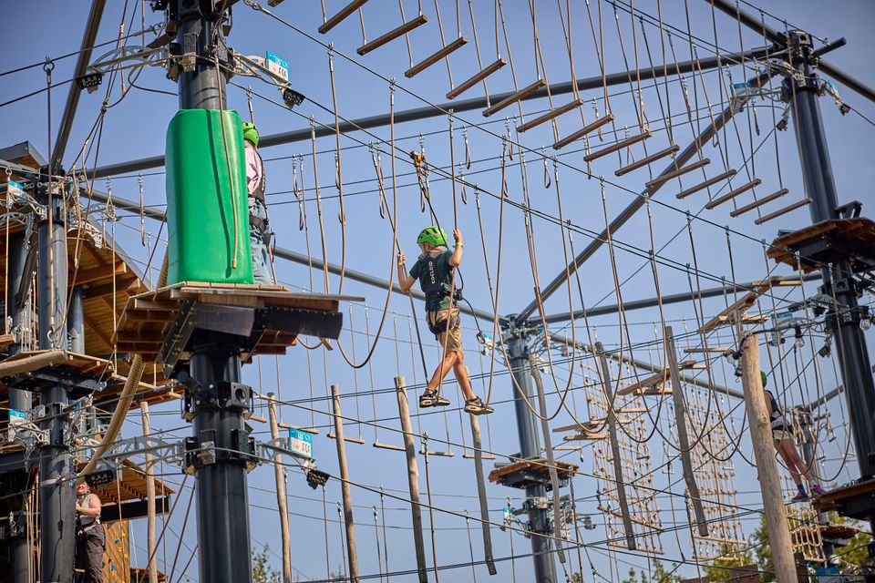 Tijdens een uitdagende activiteit bij Center Parcs De Kempervennen! Wat dacht je van het nieuwe High Adventure Parcours dat medio april ’24 geopend is? Met verschillende niveau's, voor verschillende leeftijden, is dit jouw ideale moment vol avontuur en spanning.